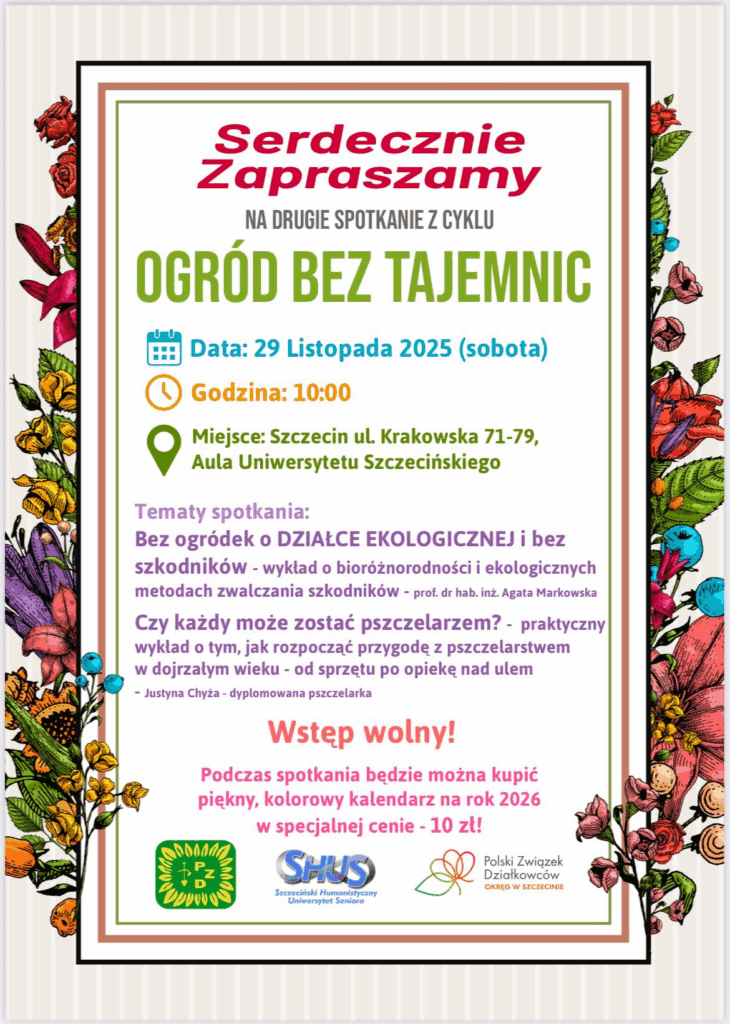 Polski Związek Działkowców okręg w Szczecinie zaprasza na kolejne spotkanie z cyklu „Ogród bez tajemnic” 2025-11-172025-11-17 adminBez kategorii